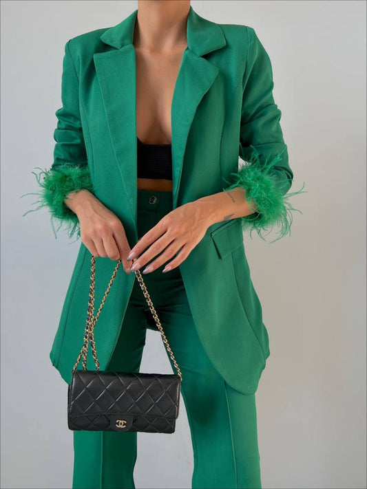 Спортно-Елегантен Костюм с Ествени Пера Зелен